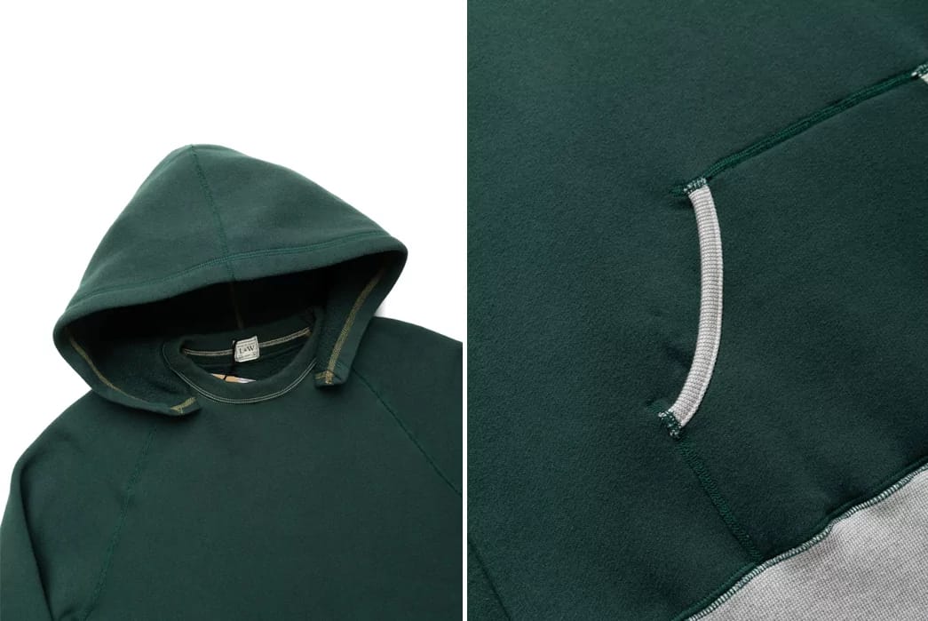 Fluffy snow. Fluffy omelets. Never fluffy sweatshirts, unfortunately. Until there was you, Raglan After Hoodie Sweatshirt by Loop & Weft. Modeled after the highly coveted, impossibly scarce after hood sweatshirts of the 1930s-1950s, this fresh take is featured in an enticing two-tone ‘Vintage Forest Green’ and heather combo. Thanks to the raglan cut sleeves and roomy kangaroo pouch, feel free to max out your motion while keeping your hands warm.