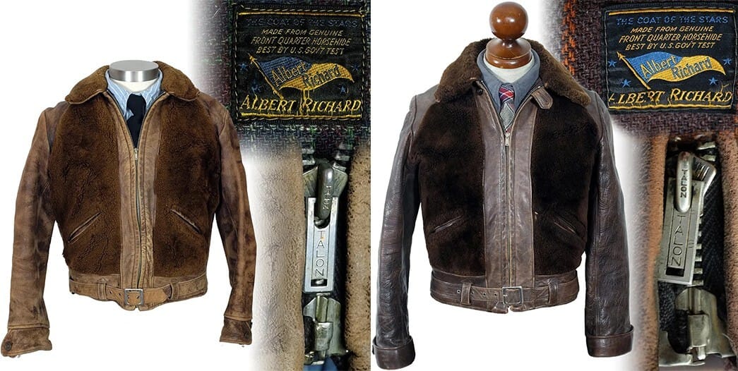 Vintage Albert Richard advert featuring Sid Wagner, via Vintage Leather Jackets (Himel) (left) and vintage Albert Richard advert via Craftsman Clothing.