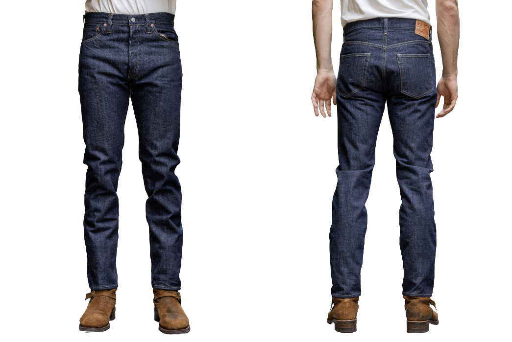 Notes: Based on 1960s Levi’s 501 silhouettes, goatskin leather waist patch, custom hardware, made in Osaka, available in both raw and one wash variants
