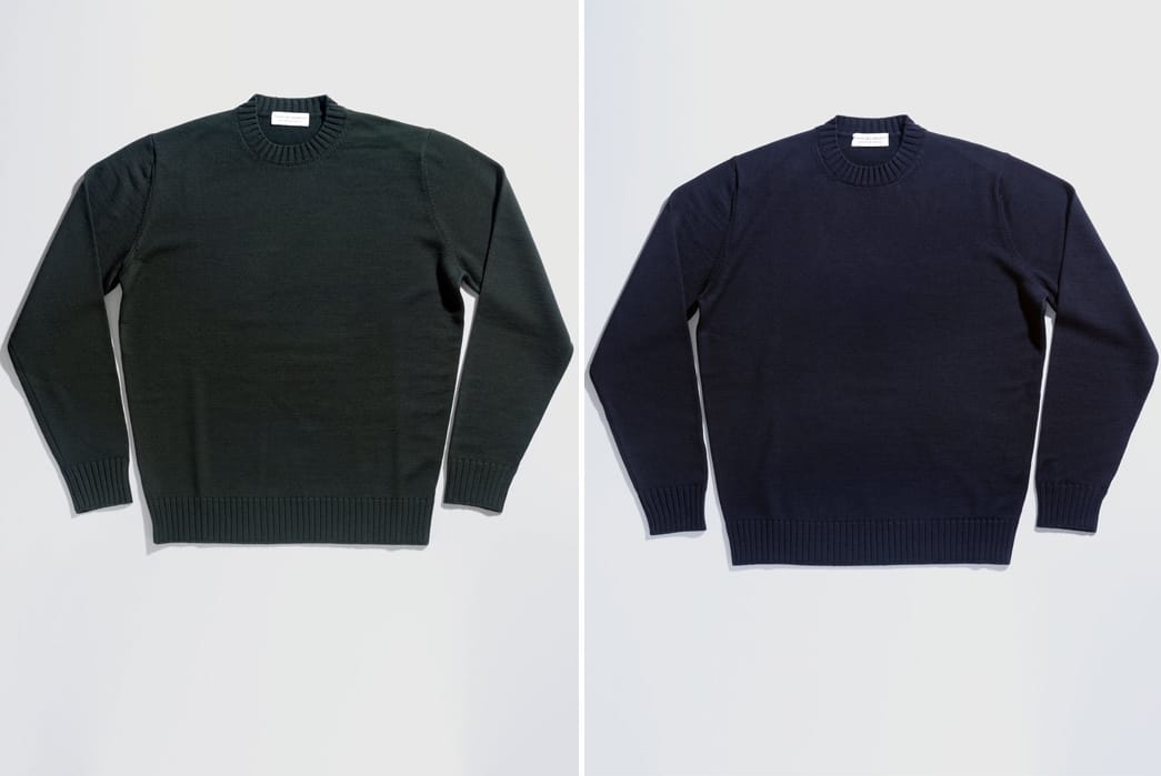 When it comes to heritage-inspired knitwear, HEIMAT is one of the biggest hitters in the game right now. The German imprint is known for its heavyweight knits, but its Rundhals Sweater is a mid-weight merino number knitted from 8-gauge merino wool yarns. Perfect for transitional weather or layering up on those really frigid days, this loose-fitting beauty is made in Germany and comes in 8 (!) colorways, so there’s something for anyone who will appreciate some merino goodness.